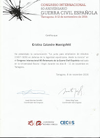 También , sobre el tema de la JAE-y la Residencia presente una Comunicación al Congreso internacional organizado por la Universitat Rovira i Virgili de Tarragona, en noviembre del 2016